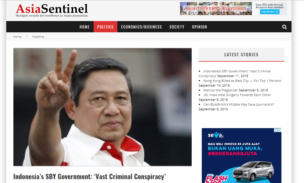 asing Asia Sentinel mengenai skandal Bank Century dan kaitannya dengan rezim